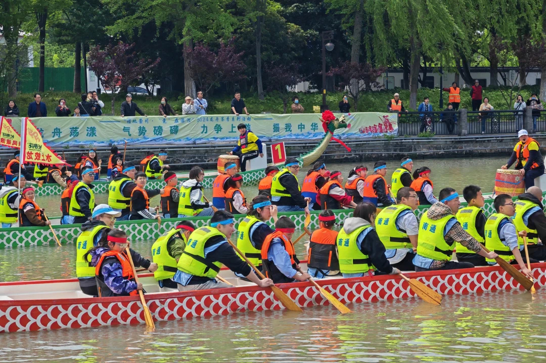 5月1日,“長(zhǎng)壽花糧油”杯環(huán)濠河親子龍舟賽在南通濠河碼頭歡樂(lè)啟幕。