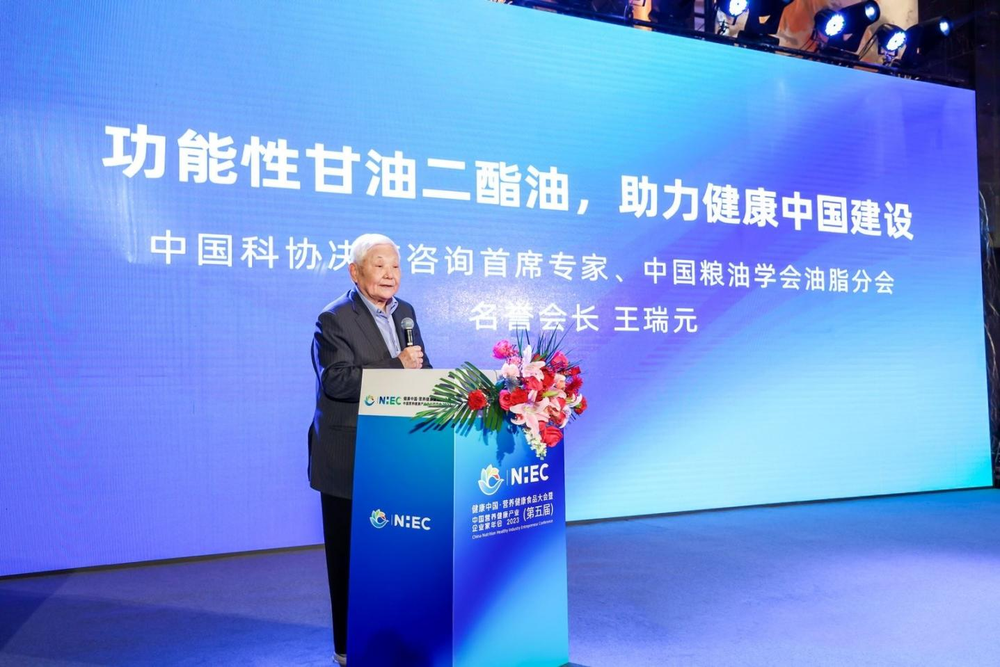 “讓國民選擇更健康的甘油二酯油,共同探索健康膳食新模式,已經(jīng)是勢在必行。未來,甘油二酯油作為食用油油脂行業(yè)的創(chuàng)新型產(chǎn)品,將為健康中國建設產(chǎn)生非凡的作用?!?/span>中國保健協(xié)會副理事長兼秘書長、國家衛(wèi)健委食品安全標準與監(jiān)測評估司原副司長張志強在致辭中表示。